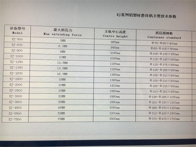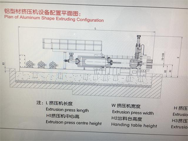 鋁型材擠壓機(jī)設(shè)備配置平面如圖1-1,XJ系列鋁型材擠壓機(jī)主要技術(shù)參數(shù)如圖1-2